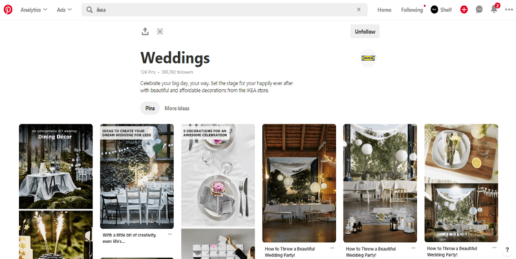 Another smart move – Ikea has stepped outside the home to include inspiration boards for things like the office, food, holidays and even weddings.